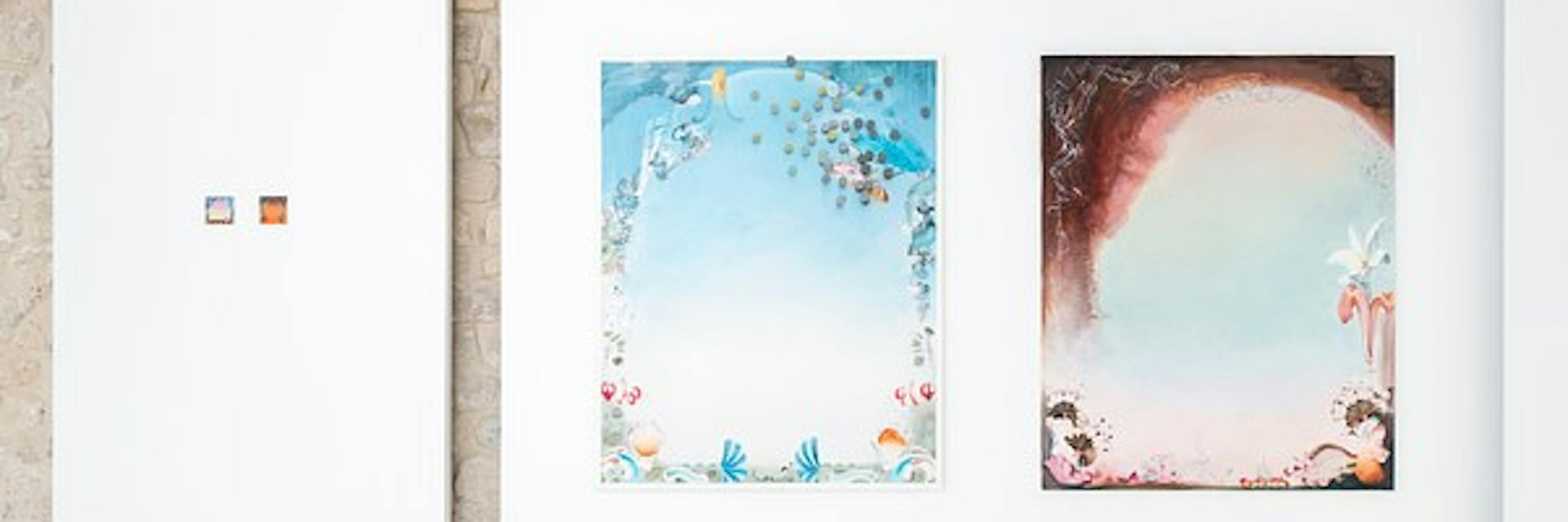La question du mouvement dans les peintures de Marijke Vasey apparaît déjà au travers de ses méthodes de travail. En effet, l’artiste, pétrie de références iconographiques allant de François Boucher (1703-1770) à Tomma Abts (1967-), travaille d’abord en collage, qu’il soit physique et/ou numérique. C’est à partir de ces travaux préparatoires qu’elle modifie et articule ses compositions. Ces dernières ont connu un tournant décisif en 2019 lorsque l’artiste décide de s’intéresser spécifiquement aux bordures de ses toiles et d’y repousser toutes images figuratives ou motifs à leurs limites recréant ainsi un cadre. Ce processus lui permet alors de donner naissance à des zones liminales et décoratives sur une surface dont le centre est censé accueillir l’image, le message principal du tableau. Chez Marijke Vasey, au centre de ses œuvres, il y a surtout du vide, mais du vide coloré, une surface qui oscille entre une colorfield painting et des esquisses de ciels à la William Turner (1775-1851). Dans le cadre de cette série, ces dégradés au centre des compositions et à la limite du visible, sont un appel aux différentes saisons et aux changements de lumières qui en découlent, comme les titres le signifient (Spring, Summer, Winter). Nous remarquons l’absence cependant de l’automne, faisant ainsi s’effondrer la tentation d’un système, comme un pied de nez à l’ordre programmatique de la peinture, comme une sorte d’anti-cycle des saisons de Nicolas Poussin (1660-1664) pour qui ces représentations étaient également une façon de livrer une analyse philosophique du monde.